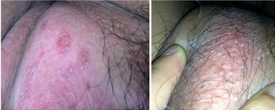 二、阴囊湿疹:主要是由汗水、污秽刺激而引起的。其表现为皮肤红肿、起水疱、渗液、结痂,甚至增厚粗糙,奇痒难忍。